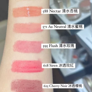 濃鬱、不黏膩的唇釉帶來光澤的色彩、極致的冰透和柔軟舒適的感覺。視覺上豐盈、平滑,打造更飽滿的雙唇,加入營養成分,改善唇部質感,水潤豐盈光澤,同時保濕。