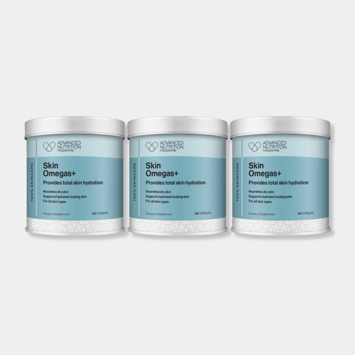 Skin Omegas+ 含有豐富營養魚油Omega 3、月見草油Omega 6及維生素 A,從細胞底層進行修復,直達每一層皮膚組織,改善皮膚健康,促進免疫系統,提升皮膚保濕度。適合所有皮膚,強烈推薦用於乾性皮膚,能有效改善暗啞乾旱的膚質,並對濕疹皮膚有甚好效益。