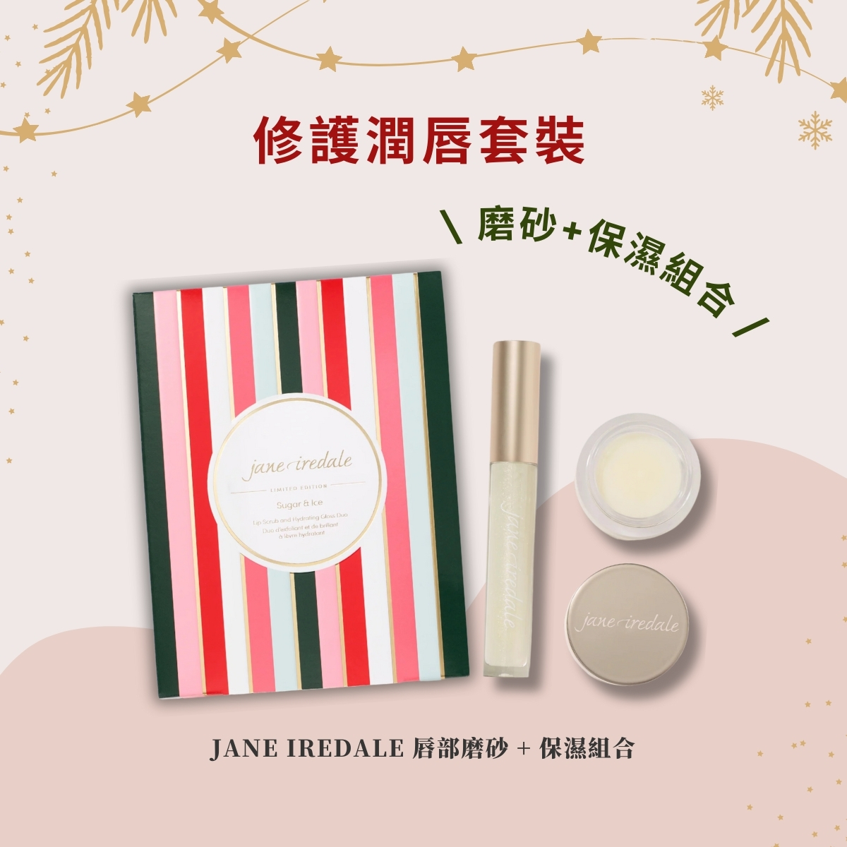Jane Iredale 節日限量版唇部護理組合,以糖和冰感為特色- 富含植物的全新糖唇磨砂膏可自然去唇部角質,而超保濕HydroPure 透明質酸唇彩可恢復唇光和滋潤雙唇。