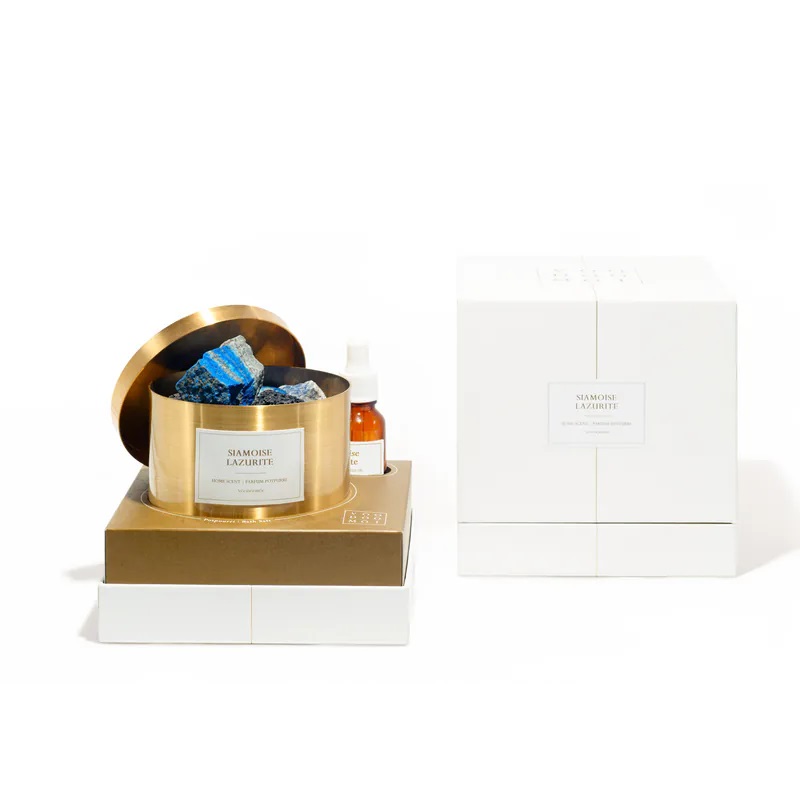 廣藿前調微綠清芬,爾後紫檀細潤,中性香華令人心曠神怡。碧藍純淨的青金石象徵著寧靜致遠,與自我的獨處冥想。